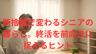 暮らし・生活 断捨離で変わるシニアの暮らし。終活を前向きに捉えるヒント シニアの暮らしを整える断捨離のコツを1万字で徹底解説。終活を前向きに捉え、無理なく片付けを進めるステップや、思い出の品を整理するヒントを提案します。物を減らして浮いたお金を投資や趣味に回し、これからの時間をより身軽に心地よく楽しむ秘訣が満載です。 2026.02.07 暮らし・生活